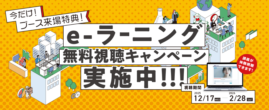 ブース来訪特典の「e-ラーニング無料視聴キャンペーン」の動画視聴期間は、2026年2月28日(土)をもって終了いたしました。